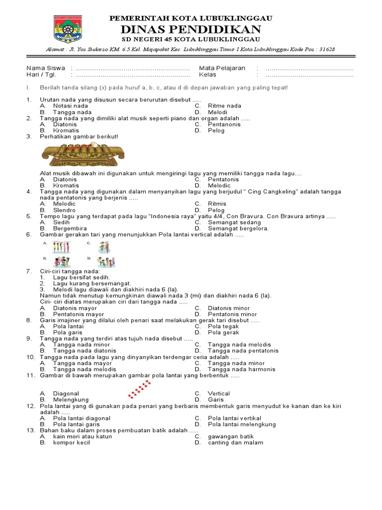 Ujian Kenaikan Kelas (UKK) pada jenjang Sekolah Dasar (SD) merupakan salah satu tolok ukur keberhasilan siswa dalam menyerap materi pelajaran selama satu tahun ajaran. Khususnya untuk mata pelajaran Seni Budaya dan Keterampilan (SBK), UKK dirancang untuk mengukur pemahaman dan kemampuan siswa dalam ranah seni, baik apresiasi maupun kreasi. Artikel ini akan membahas secara mendalam mengenai contoh soal SBK Kelas 1 UKK KTSP, dengan fokus pada berbagai aspek yang umumnya diujikan, serta memberikan panduan dan tips bagi siswa dan guru.