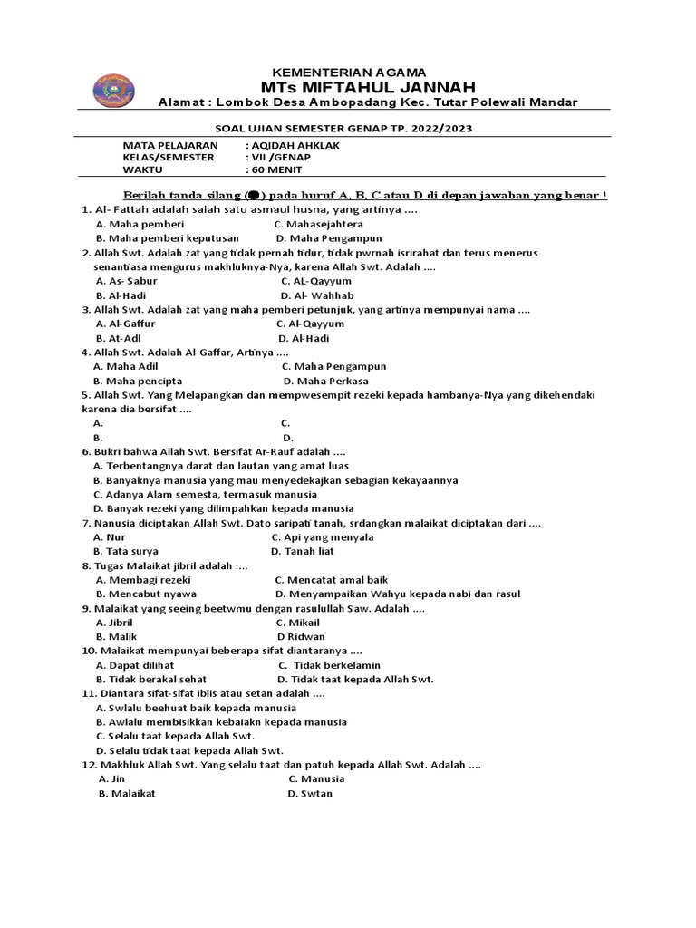 Sarana Latihan dan Simulasi: Banyak sumber online menyediakan soal-soal beserta kunci jawabannya yang disusun berdasarkan kisi-kisi. Ini menjadi sarana latihan yang sangat baik bagi siswa untuk menguji pemahaman mereka dalam format yang mirip dengan ujian sebenarnya.