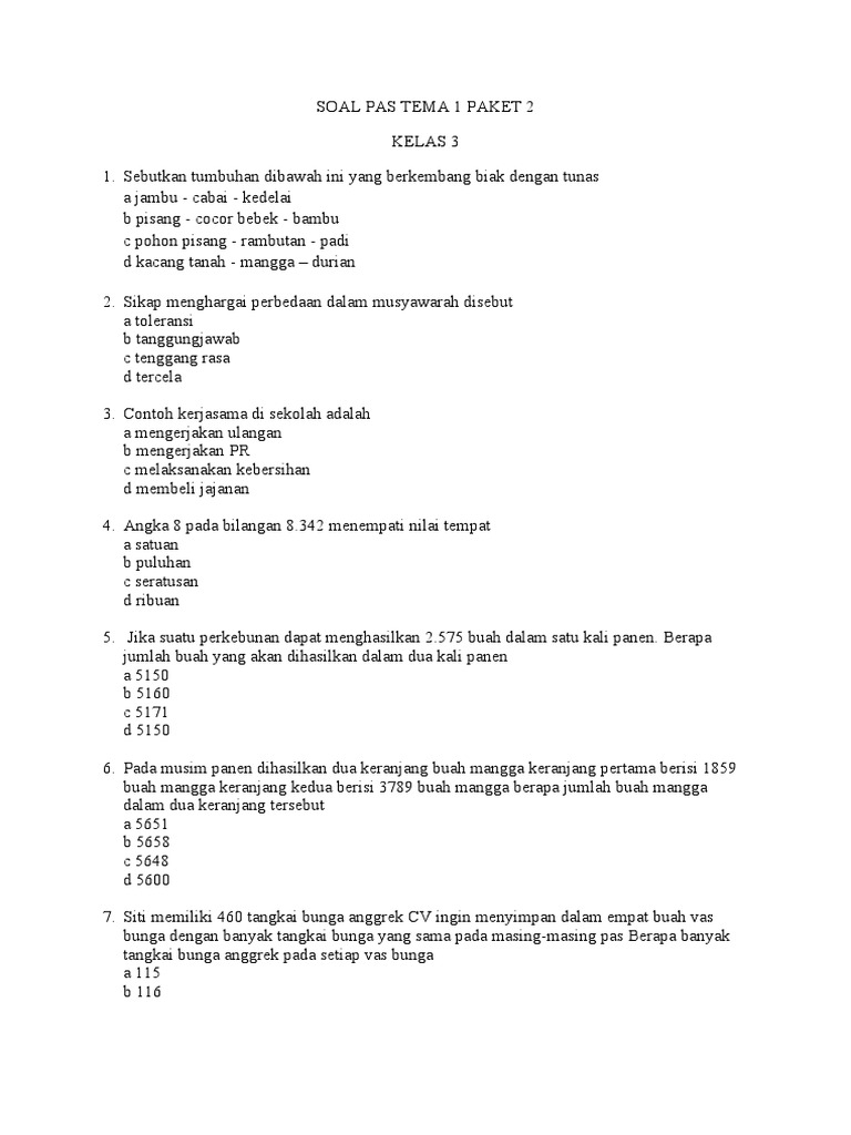 Persiapan yang matang adalah kunci keberhasilan dalam menghadapi PAS Tema 1 kelas 3. Dengan memahami materi, berlatih soal, mengikuti tips belajar efektif, dan menerapkan strategi menghadapi ujian, siswa akan lebih siap dan percaya diri dalam meraih hasil yang terbaik. Selamat belajar dan semoga sukses!
